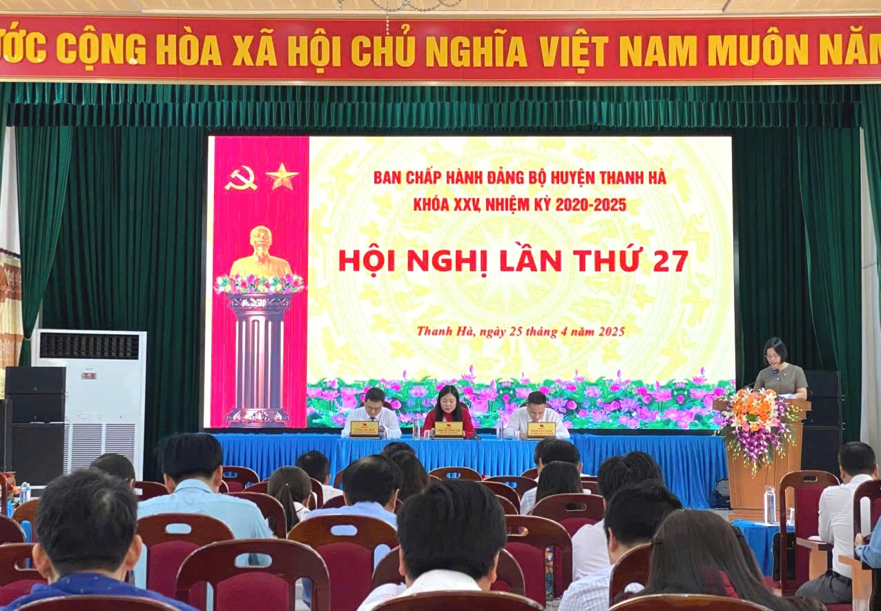 Sau một thời gian làm việc tích cực, Hội nghị lần thứ 27 Ban Chấp hành Đảng bộ huyện khóa XXV đã hoàn thành chương trình đề ra. Tại hội nghị, Ban Chấp hành Đảng bộ huyện đã biểu quyết thông qua Đề án sắp xếp đơn vị hành chính cấp xã của huyện Thanh Hà và Đề án hợp nhất tỉnh Hải Dương và TP Hải Phòng với tỷ lệ 100% đại biểu tham dự nhất trí, tán thành./